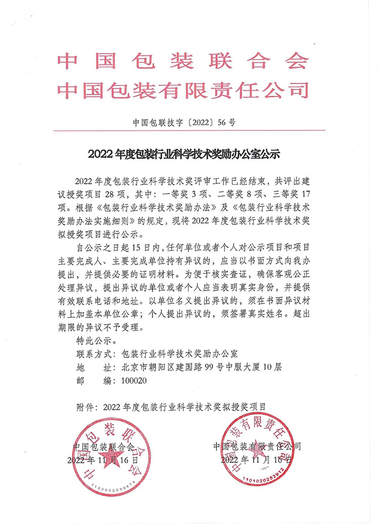 “包裝行業(yè)科學(xué)技術(shù)獎”是經(jīng)國家科學(xué)技術(shù)部核準(zhǔn)登記,由中國包裝聯(lián)合會和中國包裝有限責(zé)任公司聯(lián)合設(shè)立的全國性行業(yè)獎,該獎項(xiàng)是國內(nèi)包裝行業(yè)最具影響力的獎項(xiàng)之一。近年來,院校和科研機(jī)構(gòu)參與度逐年遞增,行業(yè)內(nèi)企業(yè)對科技獎的整體重視程度逐年增強(qiáng),使得項(xiàng)目總體水平和整體質(zhì)量不斷提升,獲獎難度也大幅增加。